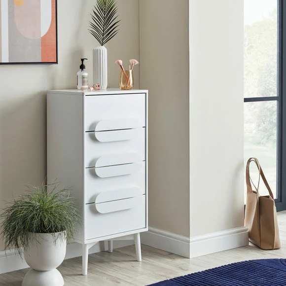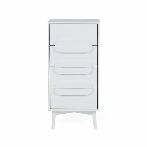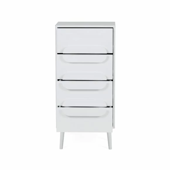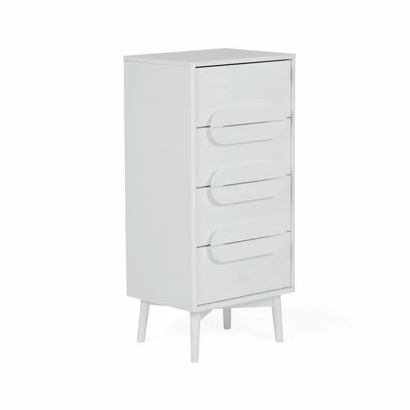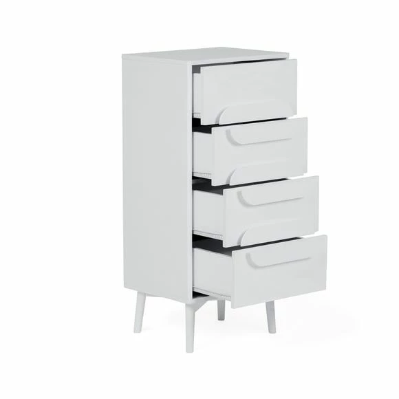 The Anders Tall Chest of Drawers features four spacious drawers, copmplete with metal runners and a stylish tapered leg design.