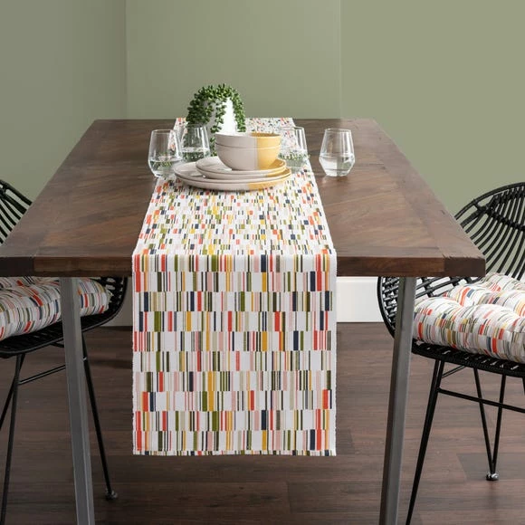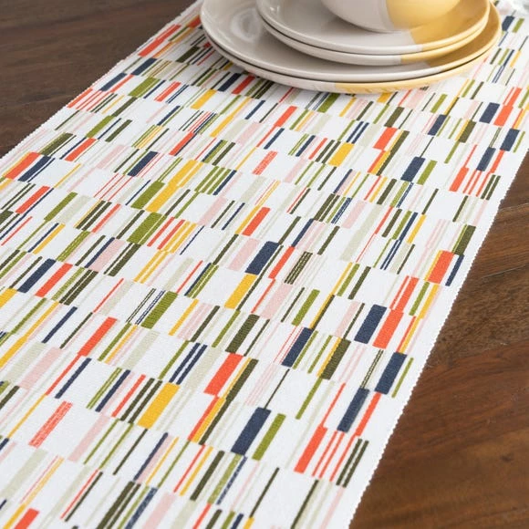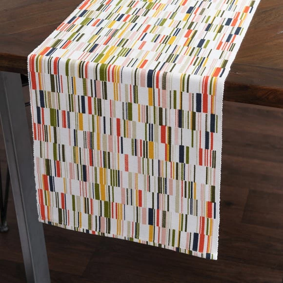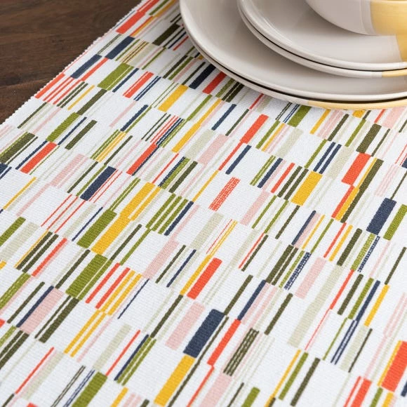 Part of the modern Arvid range, this table runner features a contemporary and colourful print design which will bring a pop of colour to your dining. Made with recycled fibres and machine washable for your convenience, the table runner is available in two sizes. Coordinate with other matching items from the Elements Arvid range for a colourful dining look.