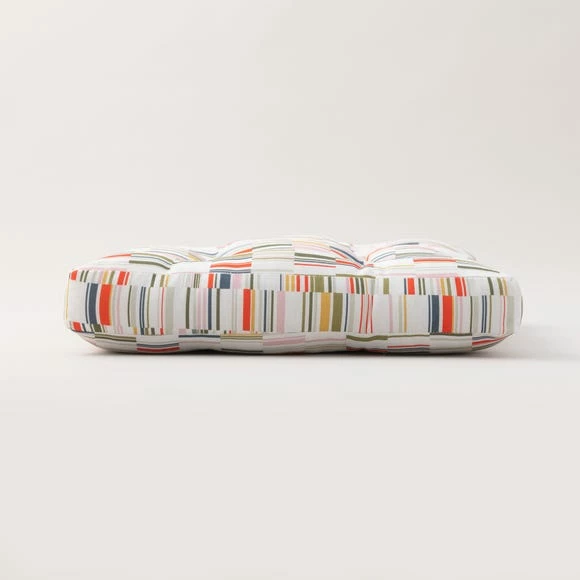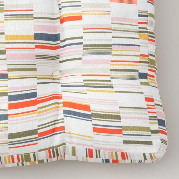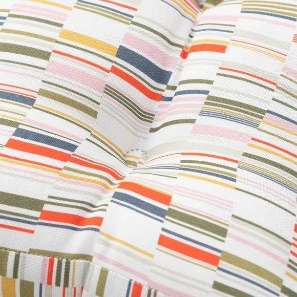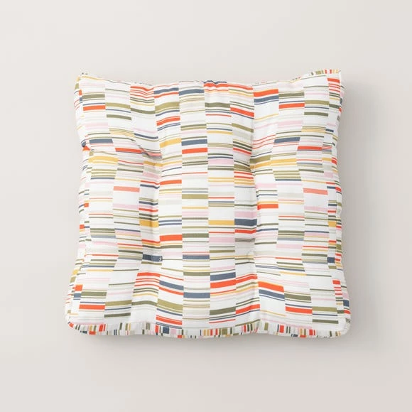 Part of the modern Arvid range, this seat pad features a contemporary and colourful print design which will bring a pop of colour to your dining. Made from 100% Cotton and filled with recycled polyester fibre for comfort, the seat pad has two practical ties to fasten to your chair. Coordinate with other matching items from the Elements Arvid range for a colourful dining look.