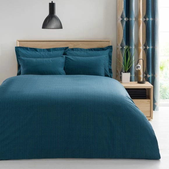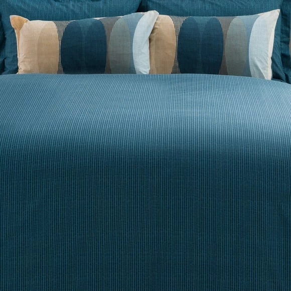 With a trendy oval print design in a striking teal and natural colourway, this duvet cover set is crafted from a practical and durable blend of polycotton or cotton requiring minimal ironing for easy care. Available in all sizes, the Elijah duvet cover set comes complete with pillowcase(s) and has coordinating accessories available.
