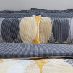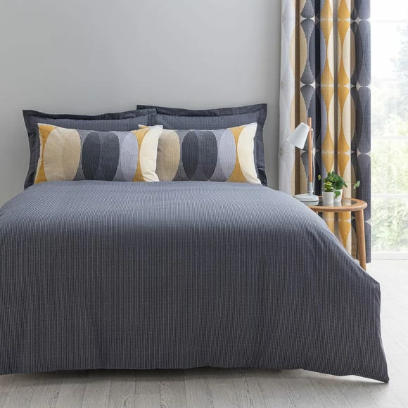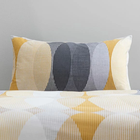With a trendy oval print design in a striking ochre and natural colourway, this duvet cover set is crafted from a practical and durable blend of polycotton or cotton requiring minimal ironing for easy care. Available in all sizes, the Elijah duvet cover set comes complete with pillowcase(s) and has coordinating accessories available.