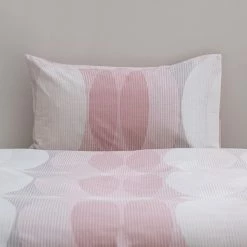 With a trendy oval print design in a striking blush and natural colourway, this duvet cover set is crafted from a practical and durable blend of polycotton or cotton requiring minimal ironing for easy care. Available in all sizes, the Elijah duvet cover set comes complete with pillowcase(s) and has coordinating accessories available.