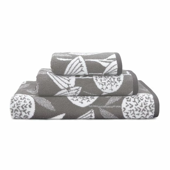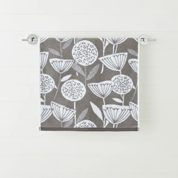 Available in a choice of sizes, this floral patterned grey towel from the Elements range is crafted from 100% cotton for a super soft feel and great absorbency with a 550gsm. Machine washable for easy care, these towels sit with the coordinating bath mat.