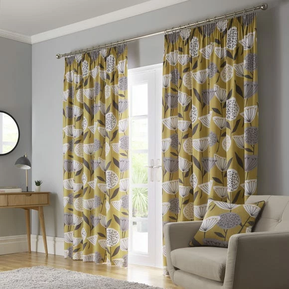 Part of our stunning Elements Emmott collection, this pair of curtains are fully lined for added insulation and come complete with a pencil pleat heading, suitable to create a luxuriously full gathered finishing touch to any room. Designed in a modern ochre colourway, these curtains feature a floral printed design with coordinating cushions available to purchase separately.