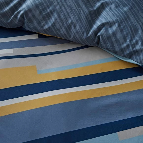 Boasting a stunning modern geometric design, this Hannes reversible bedding set is ideal for adding a contemporary feel to your bedroom. With striking blue and ochre colourways this bedding set would look stunning in any bedroom. Beautifully crafted from 100% cotton is soft, durable and machine washable.