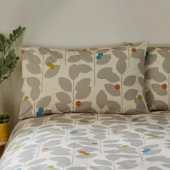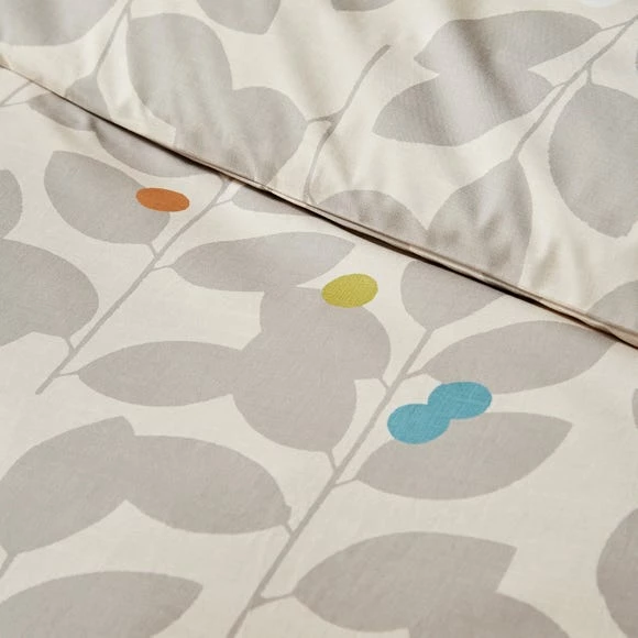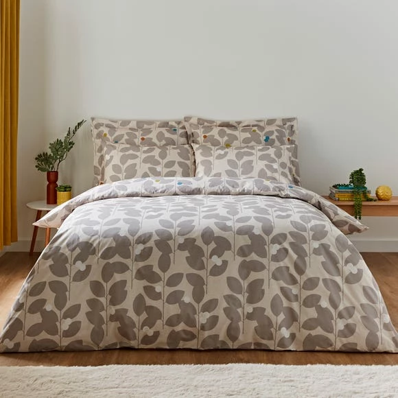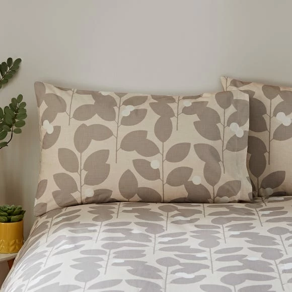 This duvet cover and pillowcase set features a printed modern leaf design with a natural colourway with pops of colour. On the reverse, the same leaf design is printed in a plain natural colourway. This allows you to dress your bed with a softer natural colour option. The duvet cover set is beautifully crafted from 100% cotton and is fully machine washable. A coordinating Oxford Pillowcase is available.
