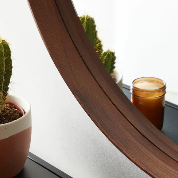 Fashioned with a good quality, stylish wooden frame, this Elements Round Mirror will bring a modern, on trend look into your home. This mirror is part of a collection and hooks to hang on the wall.