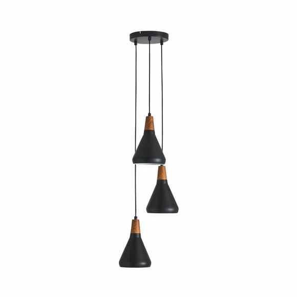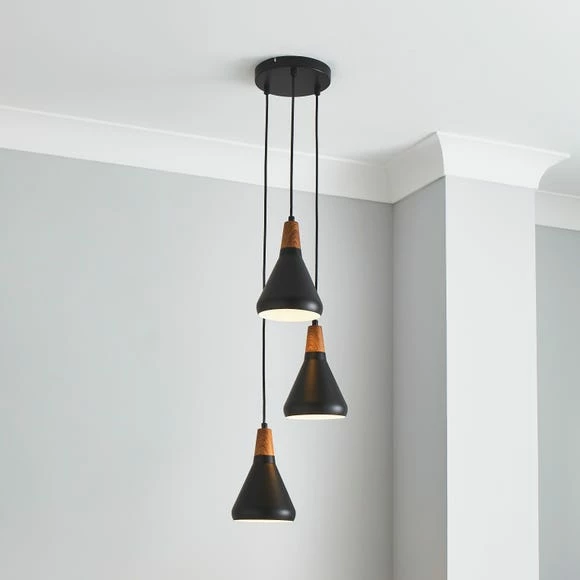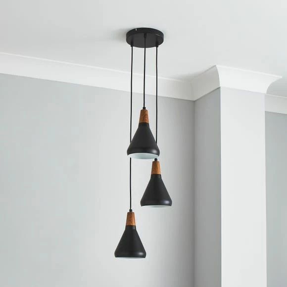 Offering a fresh contemporary design, the Wolston 3 light cluster ceiling is perfect for giving your home a light, scandi feel. Height adjustable from 25cm to 120cm, this stylish fitting features three matching conical shades suspended at different heights, complete with wood toppers for a natural touch. Available in a choice of two colours to suit your home interior space.